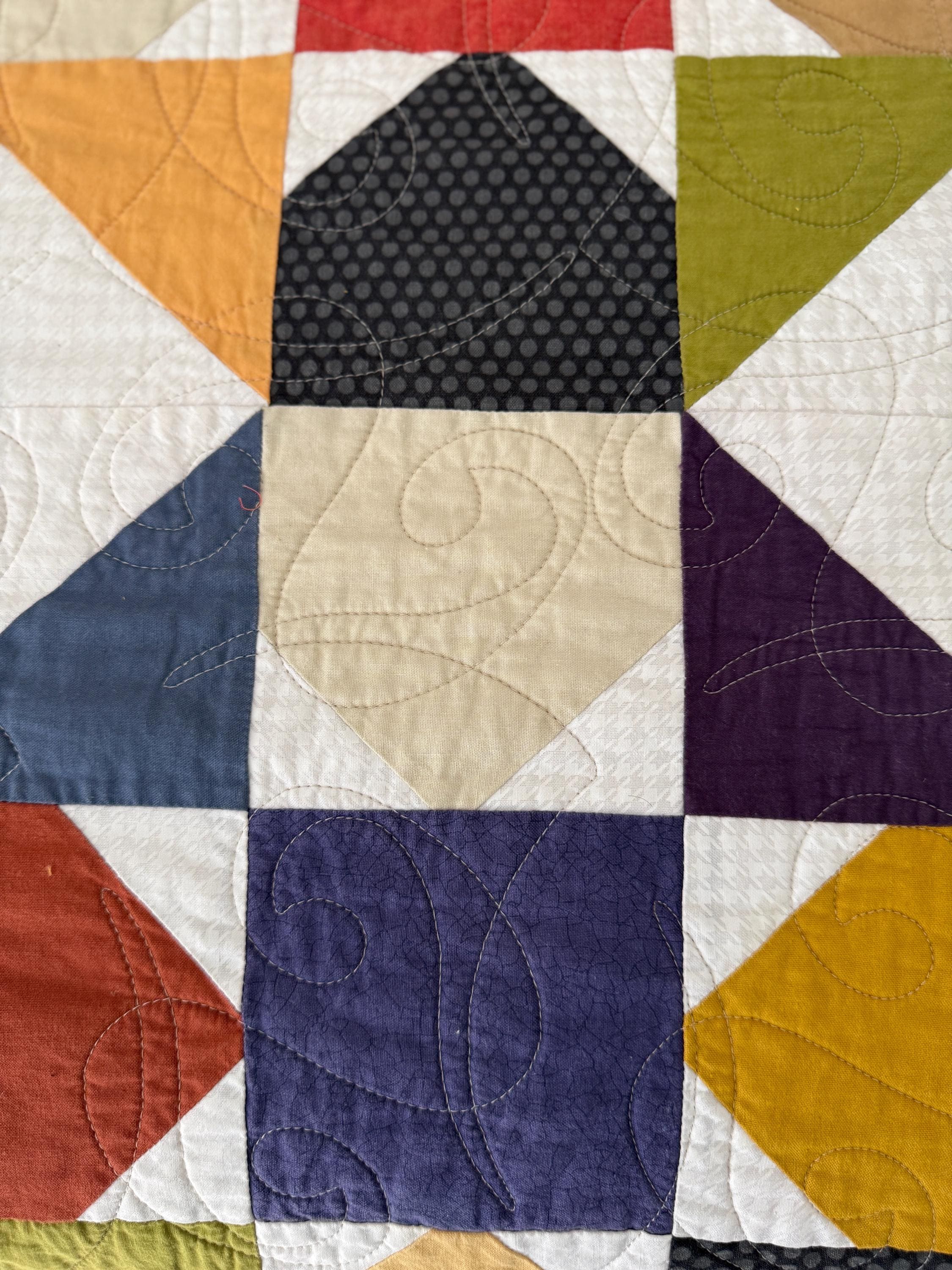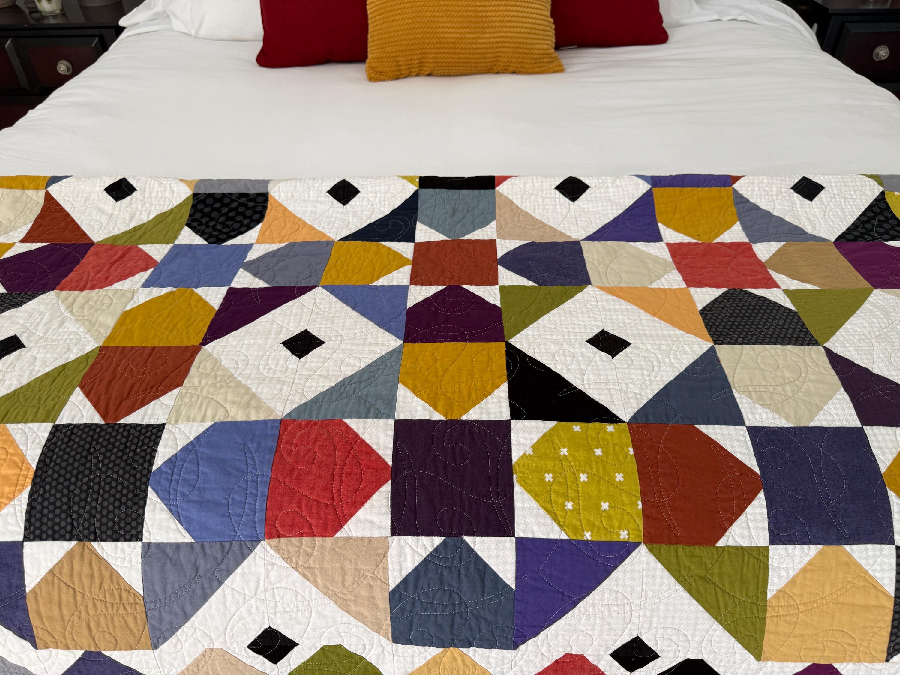All of my quilts can be put in the washer and dryer and have been made in a smoke-free, pet-free environment. Should you see a quilt you'd like in a different color or size, I'd be happy to create a custom quilt to your liking.